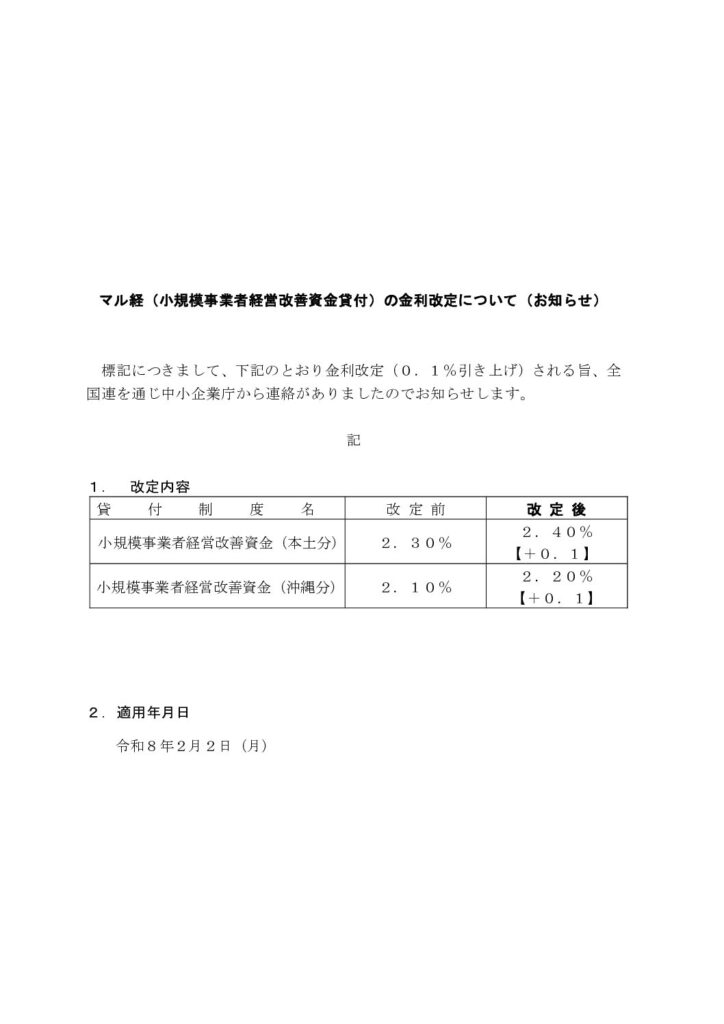 マル経(小規模事業者経営改善資金貸付)の金利改定について(お知らせ)