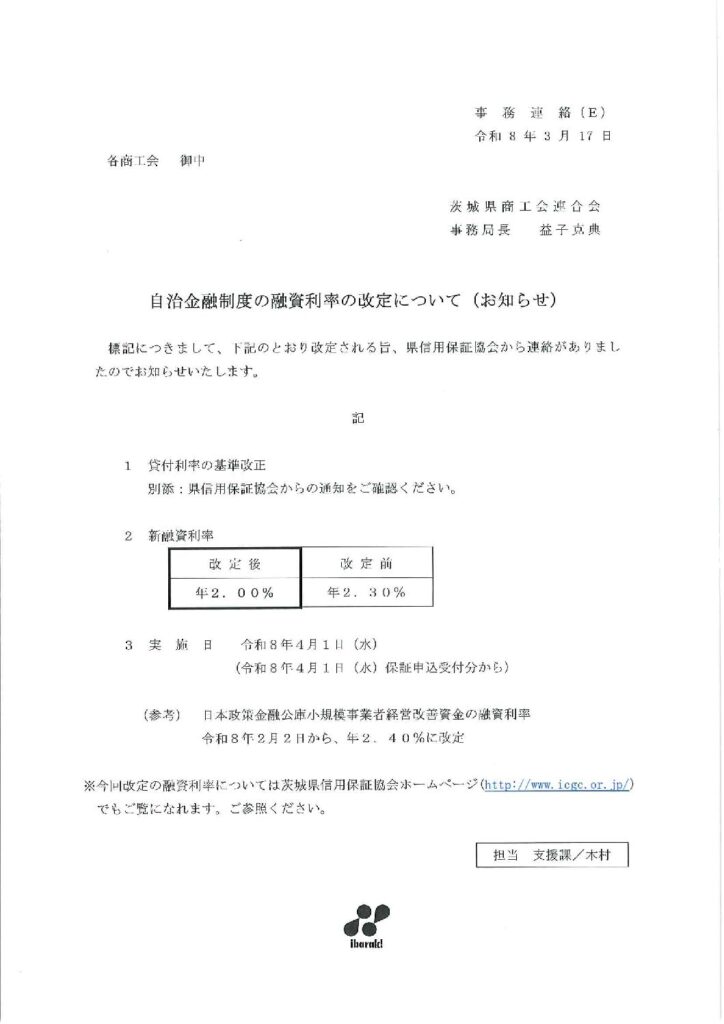 自治金融制度の融資利率の改定について(お知らせ)