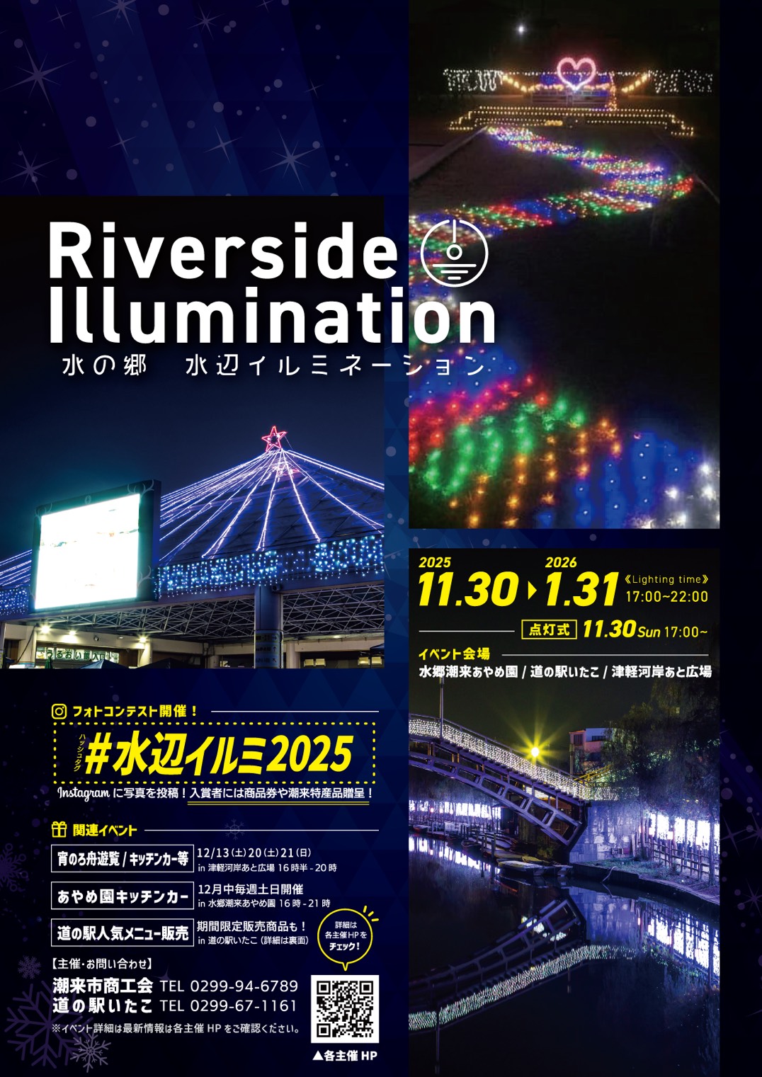 1月30日(日)~令和8年1月31日(土)まで、水の郷 水辺イルミネーション「Riverside Illumination」が道の駅いたこ、津軽河岸あと広場、水郷潮来あやめ園で開催します!